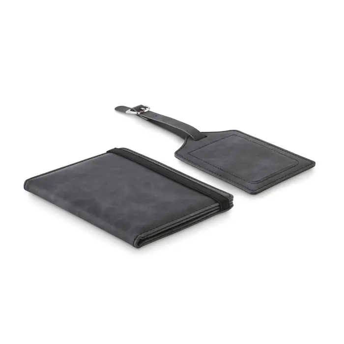 Set de porta pasaporte e identificador de maleta en PU. Presentado en caja de regalo.
