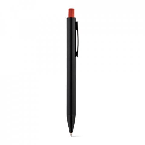 Bolígrafo de aluminio con acabado mate, clip y pulsador. El cuerpo del bolígrafo, con doble acabado permite la grabación láser. Escritura en color azul. ø10 x 140 mm