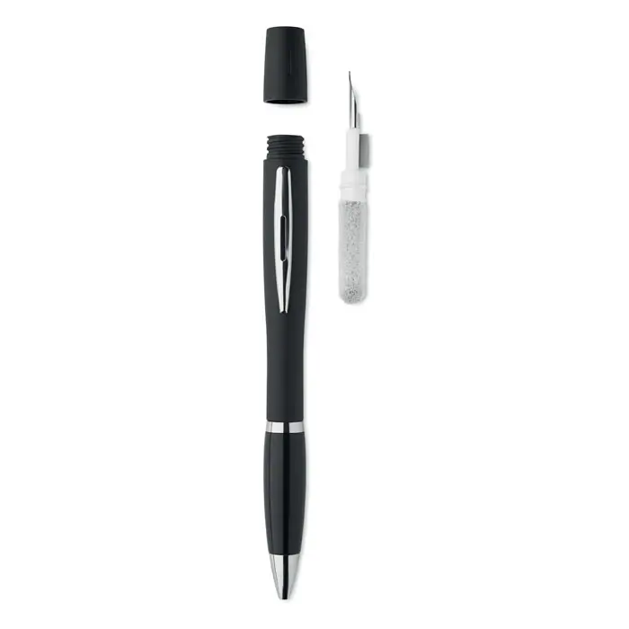 Bolígrafo con juego de limpieza TWS. Incluye un kit de limpieza de auriculares True Wireless Stereo (TWS): pluma metálica, esponja y cepillo. Tinta azul.