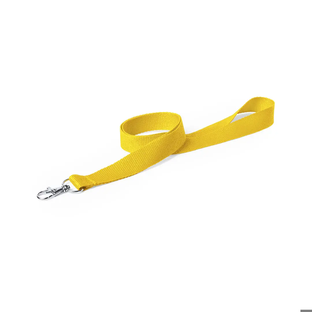 Original lanyard en resistente poliéster en vivos colores con cierre de mosquetón metálico.
