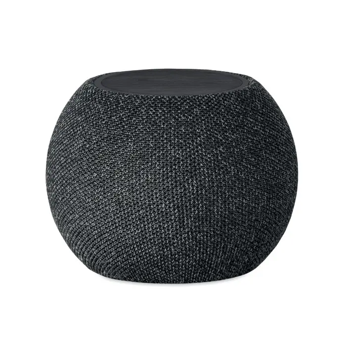 Altavoz inalámbrico 5.0 y carga inalámbrica de 15 W en ABS y tejido RPET y detalle negro de bambú en la parte superior. Incluye 1 batería recargable Li-ION de 1200 mAh. 1 puerto tarjetas SD y un cable AUX/USB. Output: 3W, 3 Ohm y 5V. Tiempo reproducción aprox. 5h.