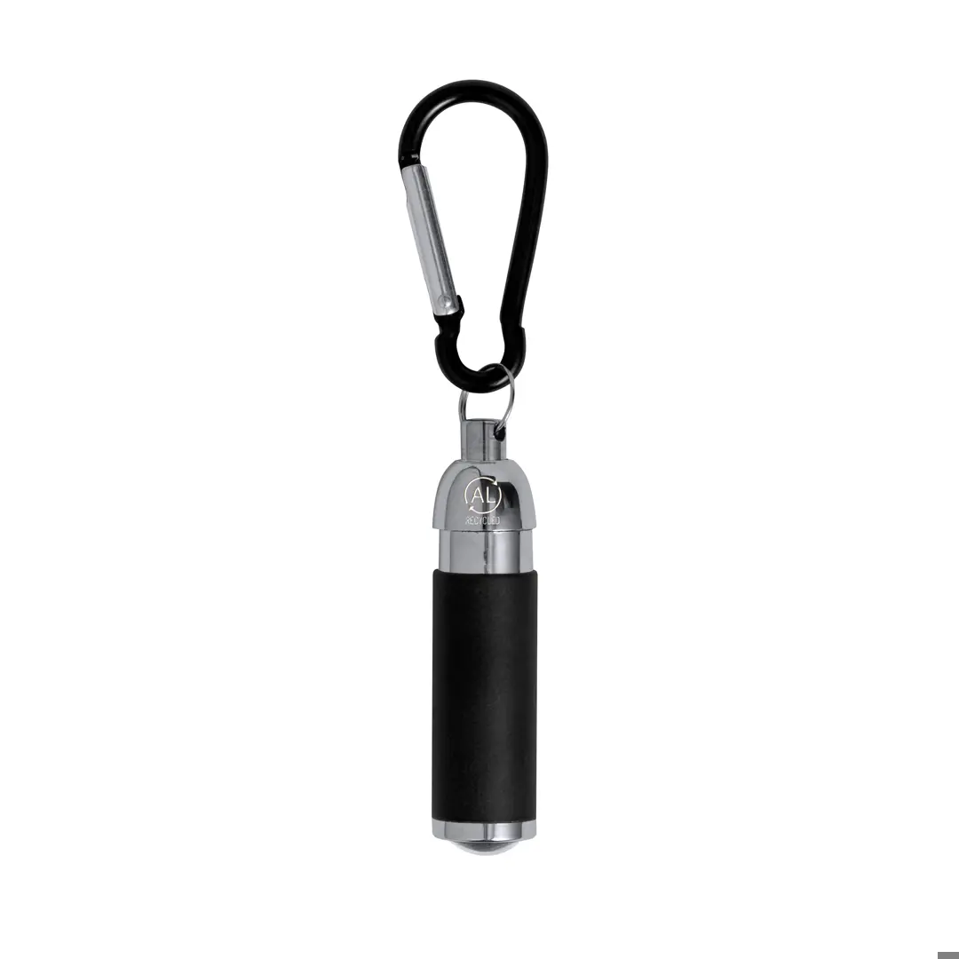 Llavero linterna con cuerpo fabricado en Aluminio Reciclado. Equipado con 1 LED de potencia, funciona con pilas de botón incluidas y cuenta con un enganche en forma de mosquetón del mismo color. Incluye logotipo Aluminio Reciclado en un lateral y está disponible en una variada gama de colores. Presentado en caja de diseño kraft..El Aluminio Reciclado es un material con posibilidades de reciclaje casi infinitas, sin perder sus propiedades originales y consumiendo menos energía en este proceso..Certificación GRS (Global Recycled Standard / Estándar de Reciclaje Global), que garantiza el origen reciclado del material usado para fabricar el producto.