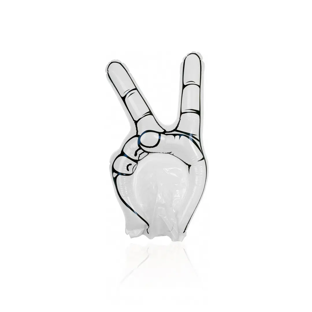 Divertida mano de animación victoria en resistente material LDPE de vivos colores. Reutilizable y con válvula de inflado incluida.