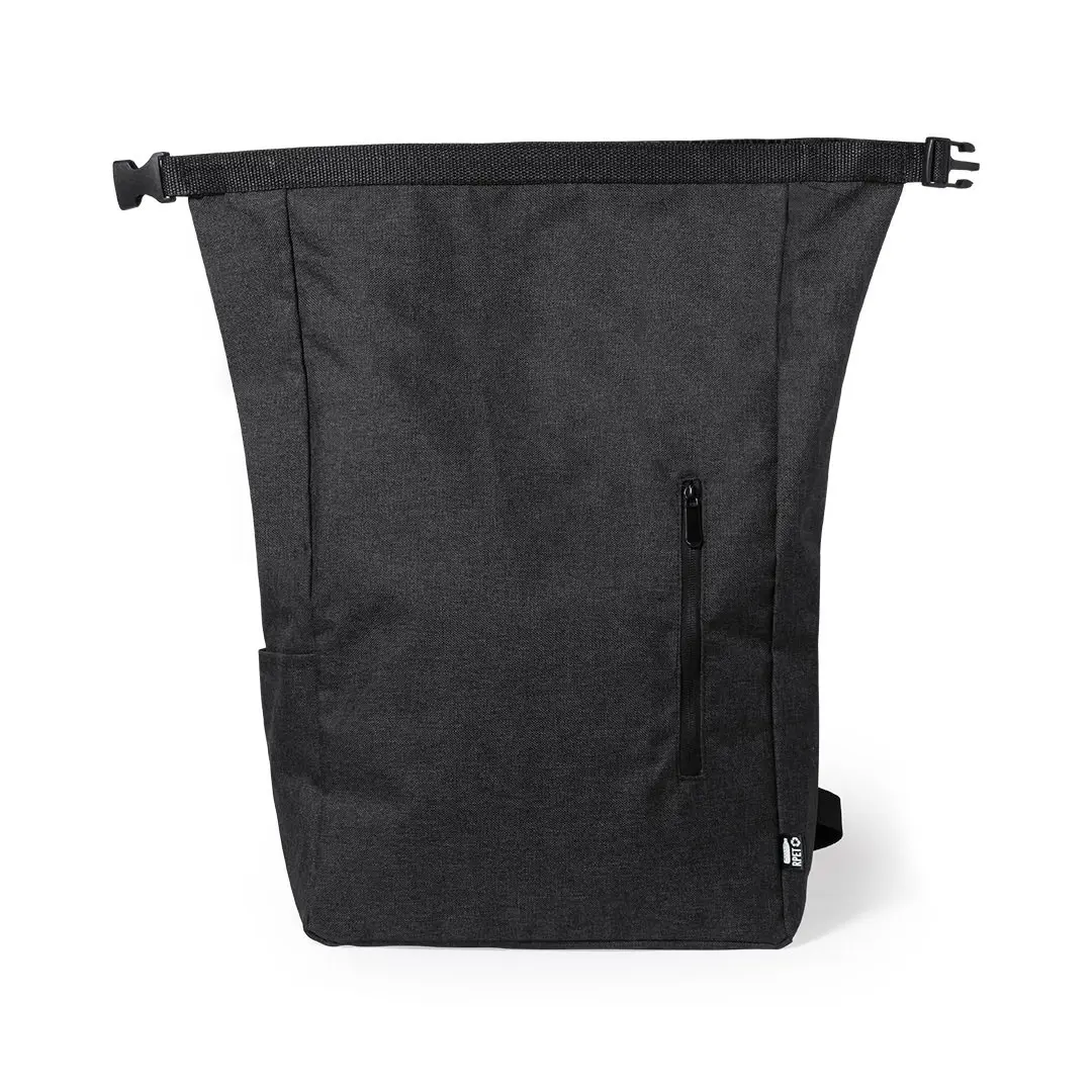 Mochila de línea nature fabricada en resistente 300D RPET, elaborado a partir de plástico reciclado, para así fomentar la reutilización de residuos plásticos y contribuir a la sostenibilidad del planeta. Bolsillo principal con cierre de hebilla y bolsillo lateral. Cintas acolchadas ajustables para hombro y distintivo RPET en etiqueta exterior.