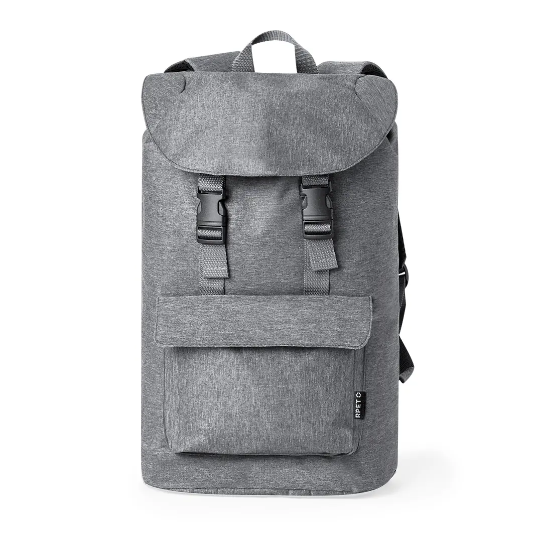 Mochila fabricada en resistente 600D RPET. El bolsillo principal se cierra con cordón y cuenta con una solapa con doble cierre, mientras que el bolsillo frontal tiene una solapa con cierre de velcro. Las cintas para los hombros son acolchadas y ajustables. Está disponible en varios colores y se presenta de manera individual en una bolsa reciclada. Logotipo RPET en etiqueta exterior.El material RPET se elabora a partir de plástico reciclado, para así fomentar la reutilización de residuos plásticos y ayudar a la sostenibilidad del planeta.