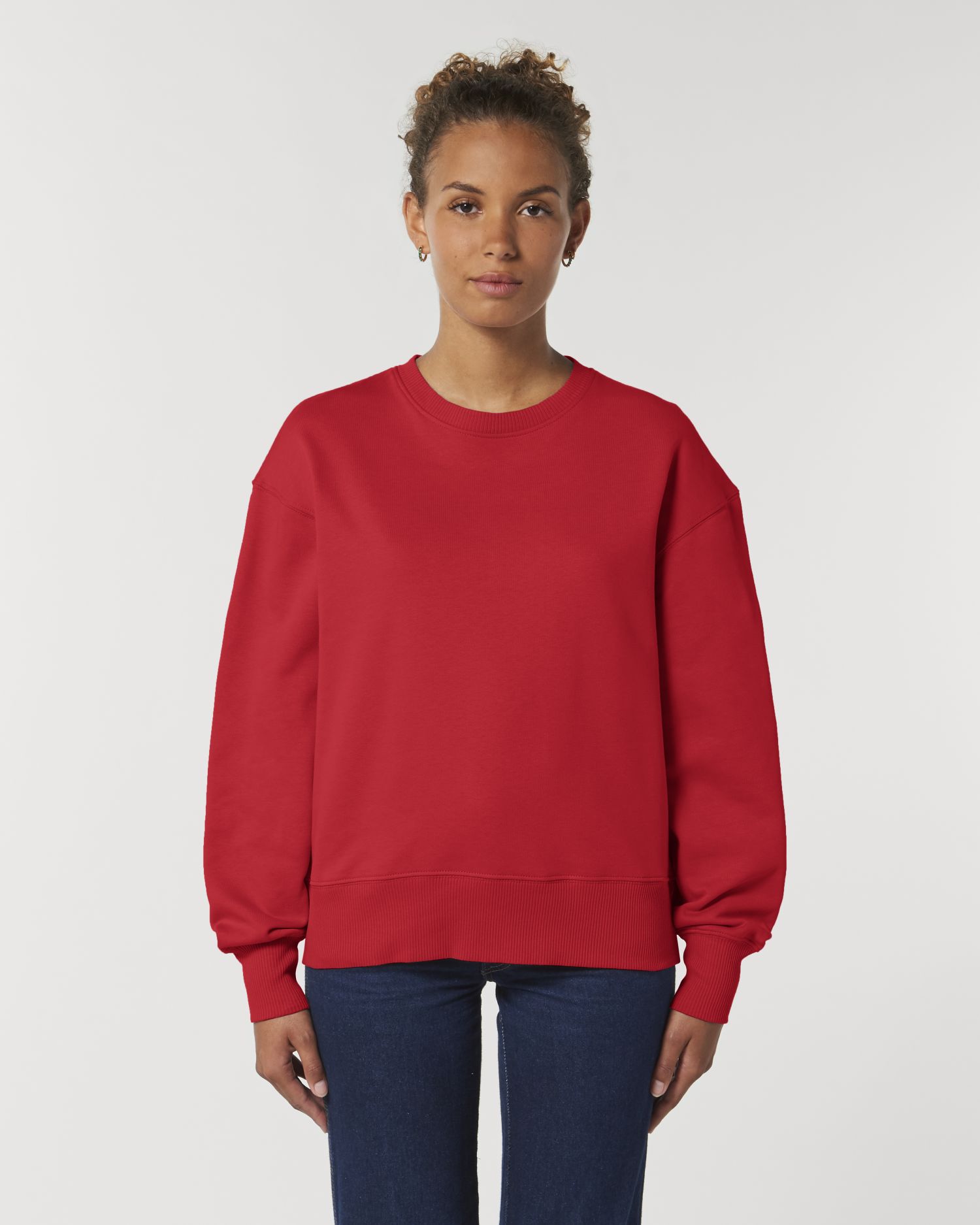 La Sudadera suelta unixex de cuello redondo. Corte suelto, Cuello redondo, Long Sleeve, Felpa perchada. Manga pegada Canalé 2x2 en cuello, puños y bajo Bies posterior de espiga en el cuello Media luna interior en tejido principal Puntada simple en el cuello Puntada doble en sisas, puños y bajos