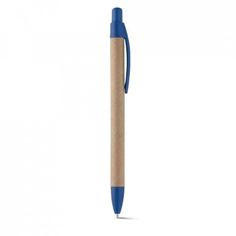 Bolígrafo fabricado en papel kraft con clip. Escritura de color azul. ø10 x 138 mm