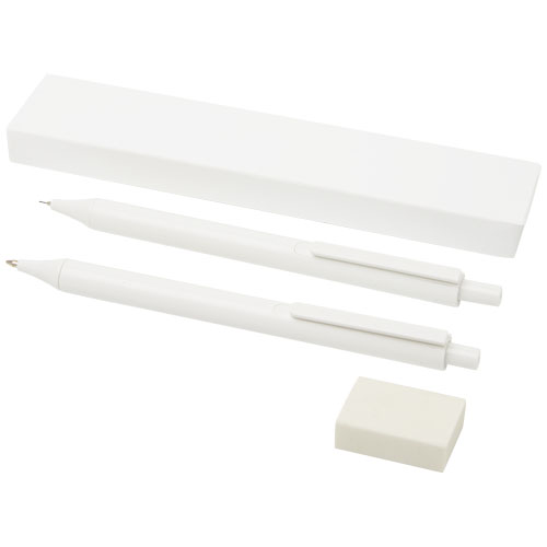 Set de papelería antibacteriano compuesto por un bolígrafo con mecanismo de presión, un portaminas y una goma de borrar. El aditivo de nanopolvo reduce el crecimiento de microorganismos en la superficie de los bolígrafos.