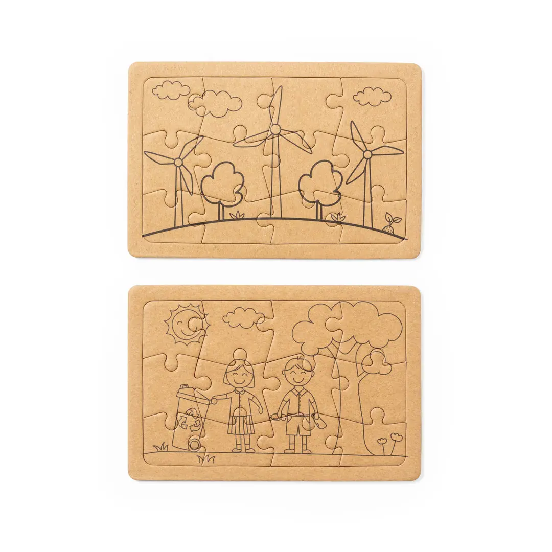 Set de puzzles de línea nature fabricados en cartón reciclado. Incluye 2 puzzles de 12 piezas cada uno. Set presentado en caja individual de diseño kraft.