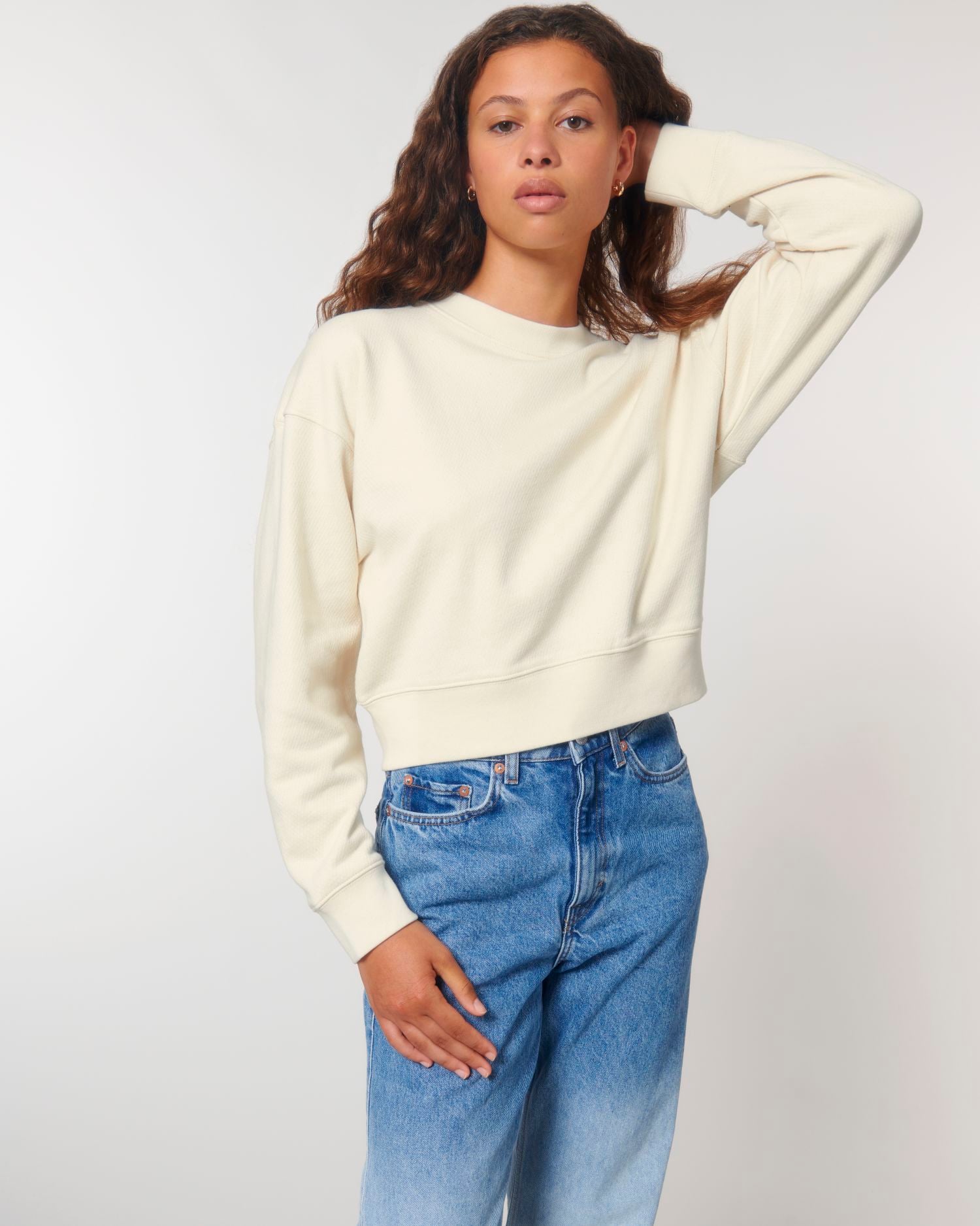 La sudadera de cuello redondo corta para ella de rizo. Corte normal, Cuello redondo, Long Sleeve, Seer Sucker Terry Sweatshirt.