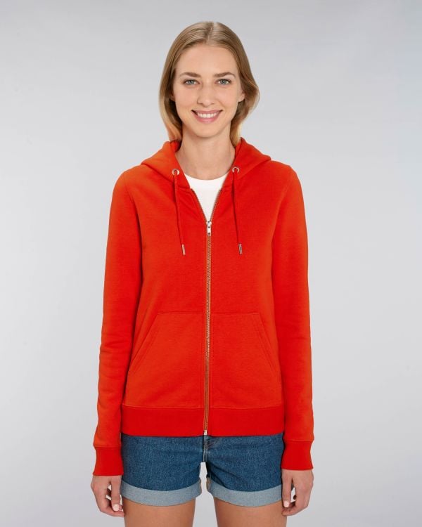 La sudadera Iconic con capucha y cremallera para ella. Corte entallado, Cuello redondo con capucha, Long Sleeve, Felpa perchada.