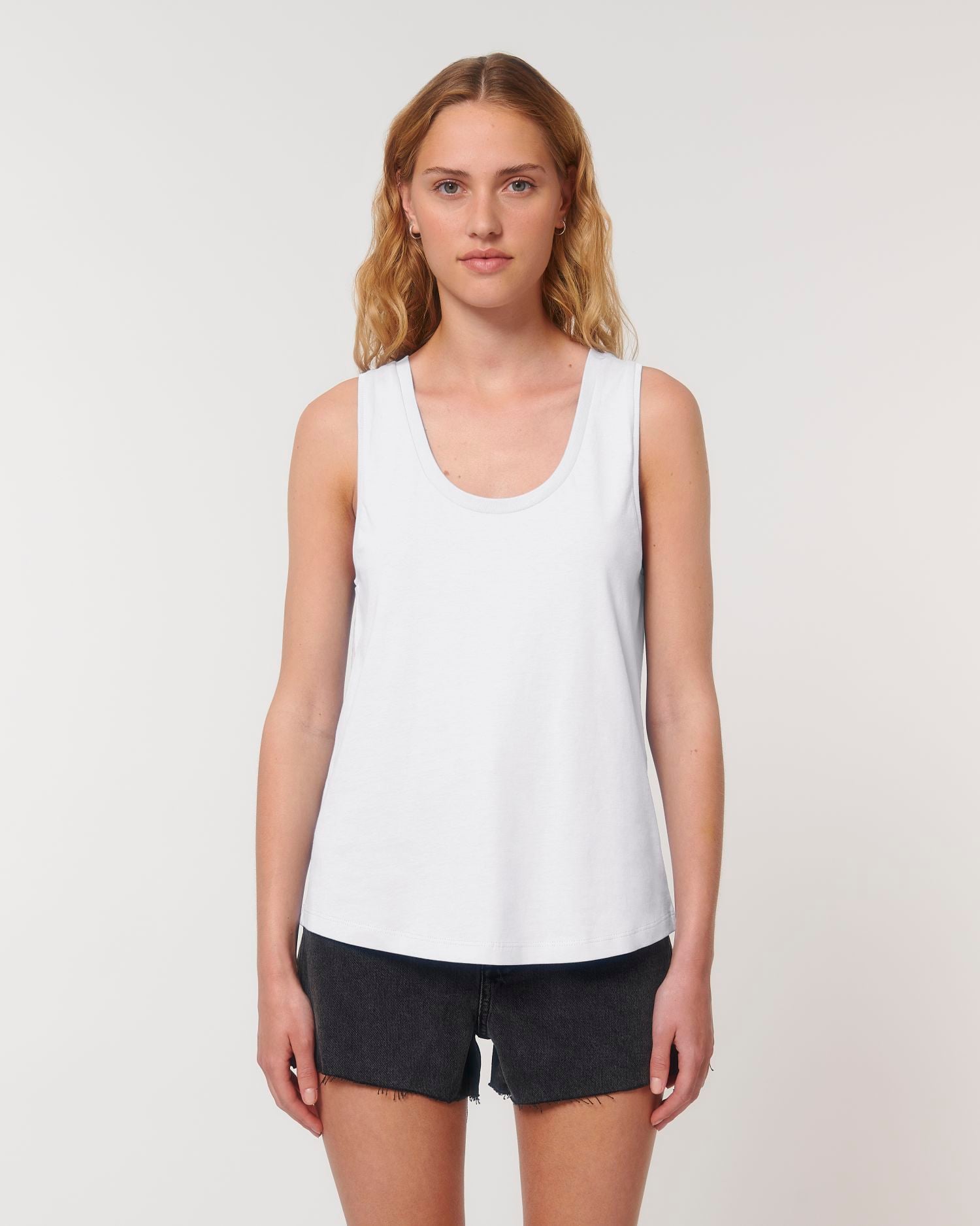 El top de tirantes para ella. Corte normal, Scoop Neck, Sleeveless, Punto de jersey sencillo.