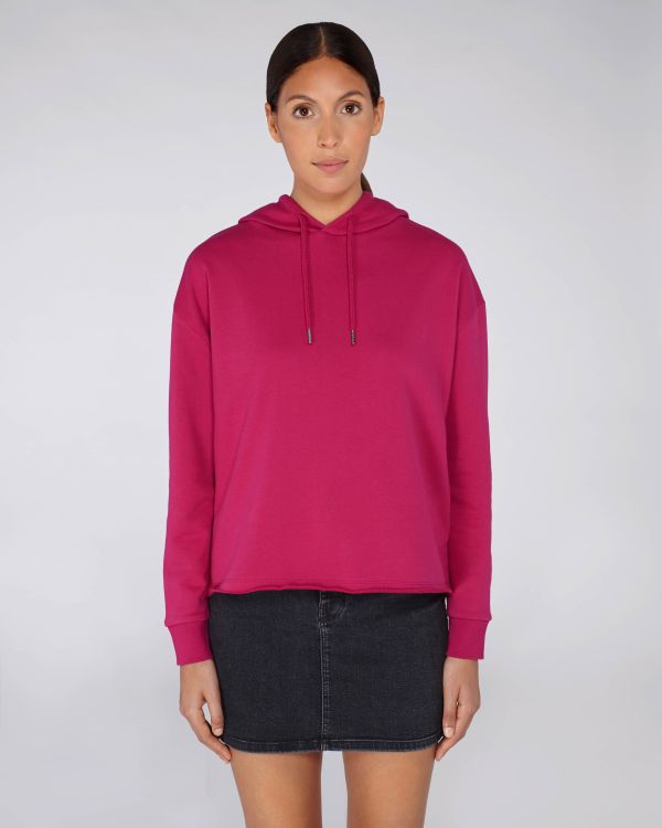La chaqueta corta con capucha para ella . Extragrande, Cuello redondo con capucha, Long Sleeve, Felpa no perchada.