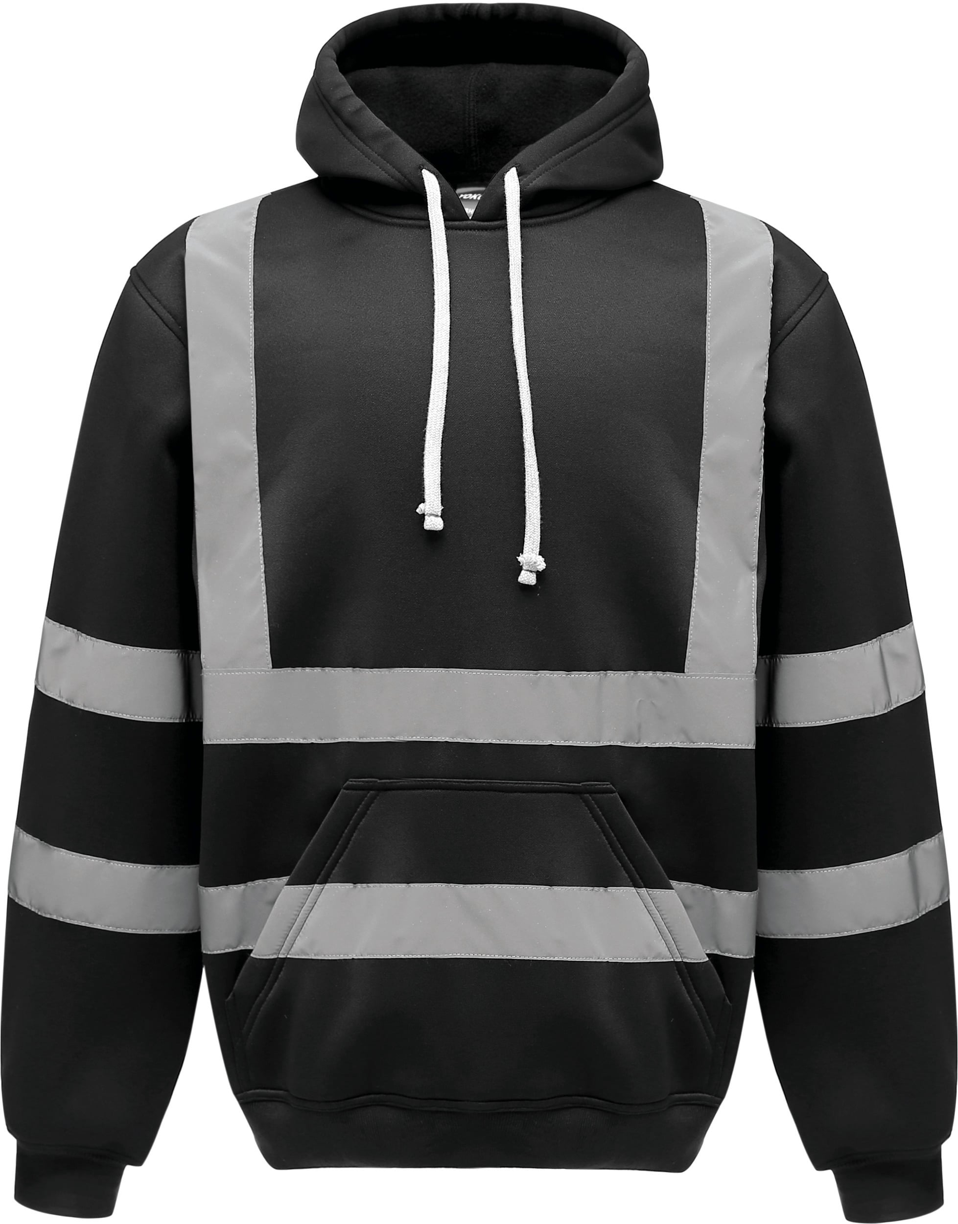 100% poliéster antibolitas. Dos tiras reflectantes (5cm de ancho) alrededor del cuerpo y de los brazos. Una tira reflectante en cada hombro. Tira de limpieza en el cuello. Capucha (en la prolongación del cuello) con cordón de ajuste. Mangas montadas. Bolsillo tipo canguro frontal. Canalé en el bajo de mangas y de la prenda. Acabado de doble pespunte en el cuello, puños y bajo de la prenda. Hi-Vis Yellow, Hi-Vis Orange, Hi-Vis yellow/Navy y Hi-Vis Orange/Navy cumplen con la norma EN ISO 20471 Categoría 3.