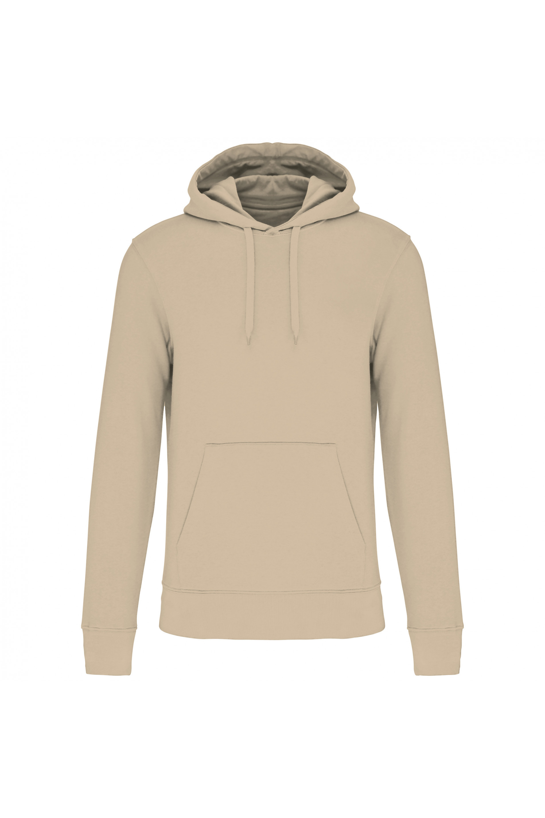 85% algodón orgánico / 15% poliéster reciclado. Felpa perchada de 3 hilos con tratamiento LSF (Low Shrinkage Fleece). Lavado enzimático. Corte recto. Para un mejor acabado canalé 1x1 tubular en puños y bajo de la prenda. Bolsillo canguro. Capucha forrada 100% algodón jersey de 180g. Tira cubrecosturas de jersey a tono y acabado de media luna en la parte interior del cuello. Doble pespunte en cuello, puños y bajo de la prenda. Sin etiqueta de marca en el cuello, únicamente una etiqueta con la talla para facilitar la personalización. Certificado STANDARD 100 by OEKO-TEX®N° CQ1007/7, IFTH.