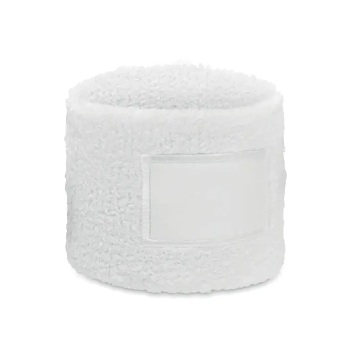 Muñequera de poli algodón (79% algodón/13% elástico/8% poliéster) con parche de algodón para la impresión.