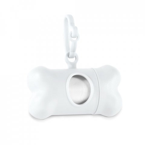 Dispensador de bolsas en forma de hueso, hecho en PP. Incluye 20 bolsas de plástico higiénicas para las deposiciones de los perros.Cerrado: 111 x 21 x 15 mm