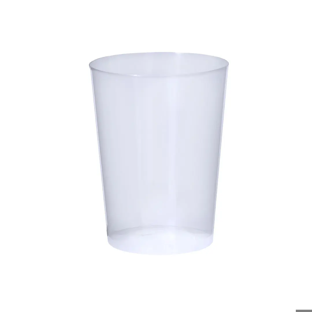 Vaso de 600 ml de capacidad en resistente y flexible material PP. Reutilizable y en acabado translúcido.